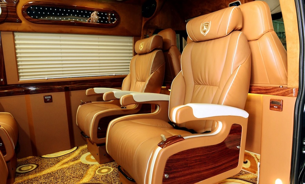 Nguyên bản từ chiếc xe Ford Transit 16 chỗ được các chuyên gia cải tiến thành một chiếc xe Limousine sang trọng, với chỉ 7-9 chỗ ngồi, ghế ngồi rộng rãi và có thể ngả hay xoay để thành một chiếc giường thoải mái. Xe Limousine Dcar van cũng được trang bị như một văn phòng di động, đẳng cấp doanh nhân của những dòng xe cao cấp, rất phù hợp cho những chuyến công tác xa, những tour du lịch cao cấp..